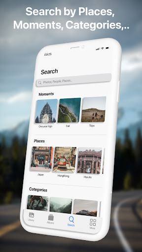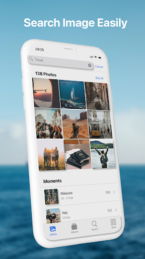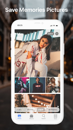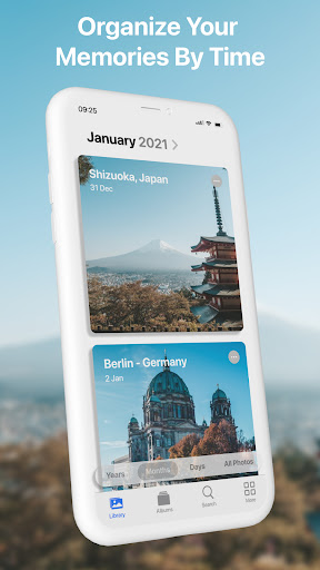 - Enjoy a curated view of your moments in the library tab, then browse by years, months, days, or all photos.