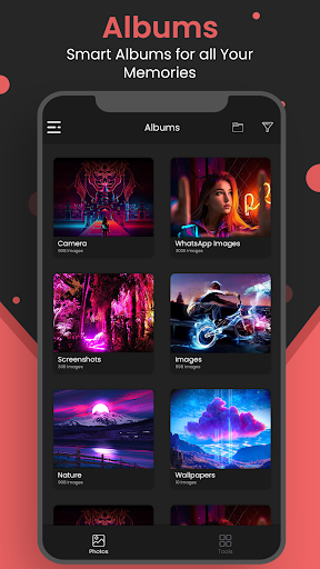 Photo Gallery comes packed with beautiful filters and a variety of built-in editing features. Gallery HD is the best choice to manage your photos and videos because HD Photo Gallery has a smart album category.