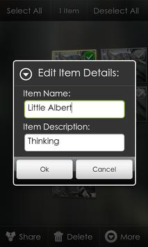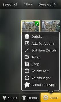 It has all the existing Gallery3D functionality with the ability of creating and managing new albums on your phone without the need of an Internet connection and without duplicates of Images or Movies on the SD card. It enables you to add name and description to Images and Movies in those new albums, as well as the albums themselves.