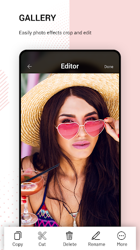 In our days it is very important to be able to improve your photos. Using our photo gallery photo editor you can edit you photos in a different ways such as filters, stickers, brightness, contrast and so on. Gallery photo editor support high quality photo editing.