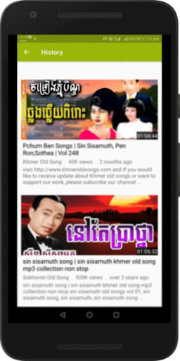 - Your viewed videos are instantly available in history. You may re-watch the best Old Khmer Songs & Music, again and again by visiting your history in the app