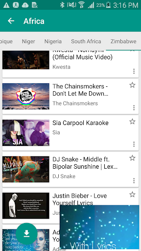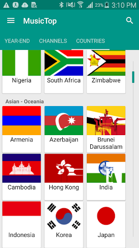 With the MusicTop you can listen top music of Thailand, Syria, Tobago...