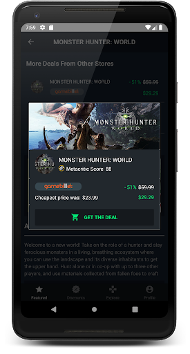 Game Deals Tracker is a must have for any gamer out there. You can find all the best deals from PC to Console games with lots of information including add-ons, video reviews, ratings, screenshots, what’s inside, release dates,...