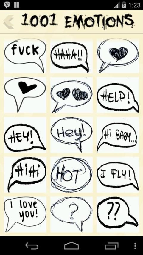 1001 Emotions 4 all text chats ,you can share your emotions to your friends and near one in the WhatsApp,viber,line,Telegram,skype