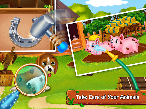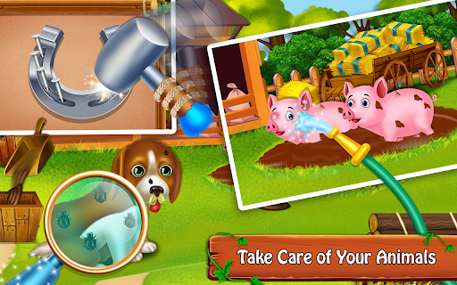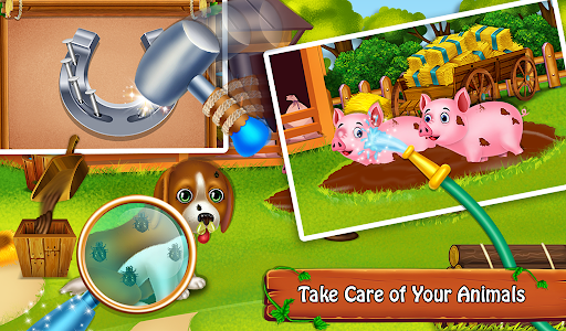 Welcome to your farm! Go on farm different activities like Animal care, house cleaning, farm cleanup, harvest fruit and vegetables, farm adventures and much more. Real-life farming with Decorate and customize your own farm. Fix and paint the farm tractor. Adventures farmers life is all about you having fun game. Make cloths!