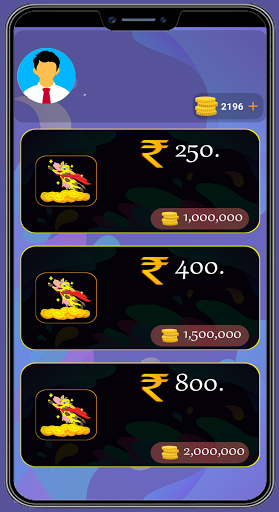 In slot mini game player have to tap on button start slot.If any two image match user get 250 coins,If three match user get 500 coins,If
