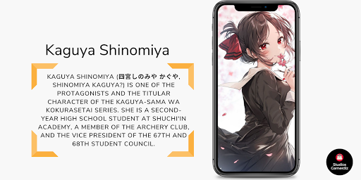 Kaguya Shinomiya (四宮 かぐや, Shinomiya Kaguya?) is one of the protagonists and the titular character of the Kaguya-sama wa Kokurasetai series. She is a second-year high school student at Shuchi'in Academy, a member of the Archery Club, and the Vice President of the 67th and 68th Student Council.