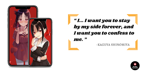 Kaguya was a very cold and rational individual but slowly changed after joining the student council. During her earlier days in council, she considered Miyuki Shirogane as one she would be fine to be in a relationship with if, and only if, he confesses first, thus she constantly plays mind games in trying to get him to confess. Later in the series, her actions imply that she is starting to accept her feelings of liking Miyuki, but won't openly admit it.