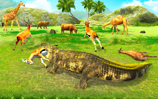 In this Crocodile Simulator: Crocodile Game 2021, you will start hunting on the city beach, causing havoc and heckling and grabbing people tight in your jaws. Nobody should escape the sea and complete all the beach hunting missions, the 3D attack game of this crocodile simulator. In this furious crocodile attack: animal attack games, your crocodile survival on the beach will be tough as police shooters are ready to shoot you and hunt this beast with crocodile games. Hungry Crocodile Attack tells the story of an angry crocodile's revenge set in a family simulator in the ocean waters. This crocodile simulation game is different from crocodile and dinosaur games or angry crocodile and crocodile games. This swamp crocodile simulator is a scary story of an angry hungry crocodile with this crocodile fighting game. Survive jungle and beach in best crocodile games 2021 with real crocodile simulator attack game.