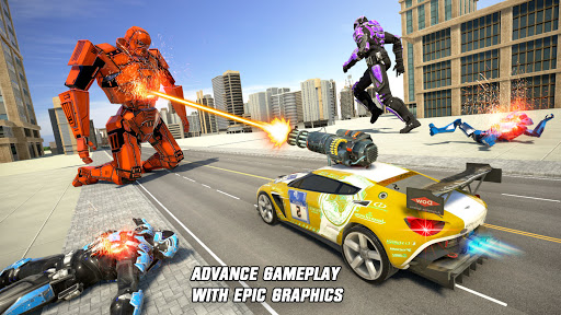 This robot car game is astonishing adventure of multi robot games where the robot transform battle is set to begin between flying jet robots and warrior robot. Join the ultimate robot wars with grand battle of fighting robots to be the player of rally car shooting games and robot transform wars.
