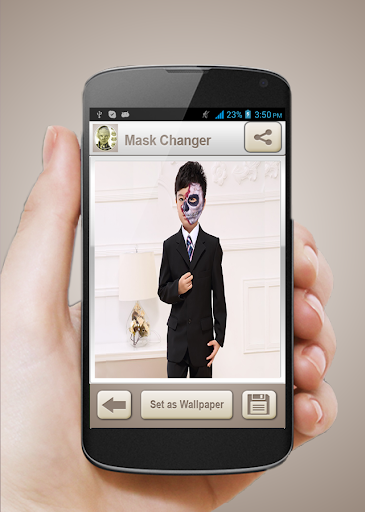 - This application allow you to use your masked face as background wallpaper.