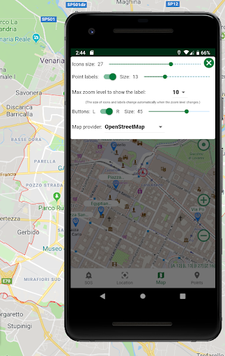 • Choose the icon and text size of the markers of your saved GPS locations, so that they can be best viewed on the map