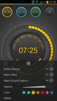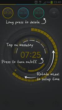 Creating a new alarm is easy: one touch to set the time, one touch to set the day.