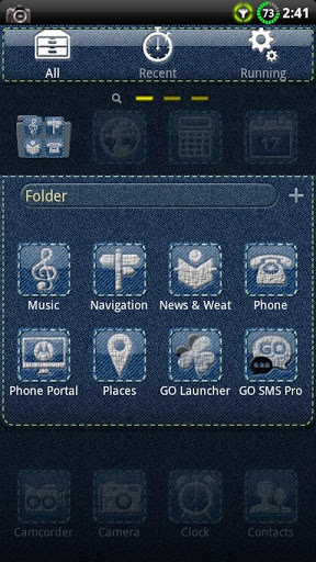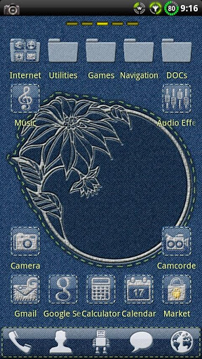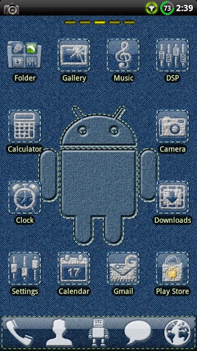 A blue Denim theme with a clean design. Denim background and docks. Very nice, simple and beatifull. Custom icons embossed in the denim skin. GO Launcher Ex and APEX Launcher compatible.