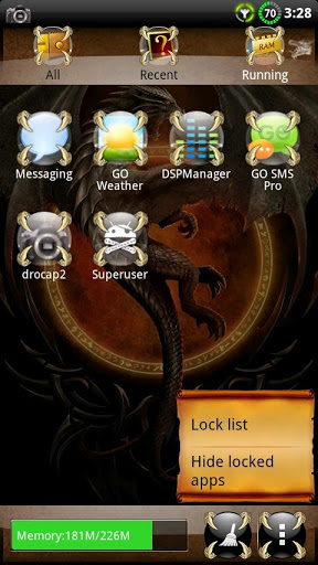 A beautiful dragon theme, the icons have an orb with dragon´s claws arround it giving a really nice toch to the theme. GO Launcher Ex and APEX Launcher compatible.