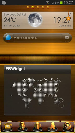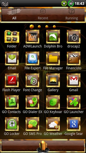Frame all your icons with a Golden look and a nice wallpaper to match it all. Wood docks gives a final toch, and here you have a theme that is clean and pleasuring. GO Launcher Ex and APEX Launcher compatible.
