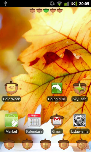 Theme for GO launcher EX where main theme are oak tree AN acorn.To change theme go: GO LAuncher EX gt; Menu gt; ThemesNote: This app will periodically present airpush advertisements in your notification bar. all the Permissions are for advertising, which is to support the development for this app. If you have issues with this, search in market an official airpush blocker, and use my themes without any advertising
