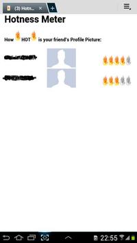 Tell your friends how hot is their Facebook profile pic. Rate your friends' Facebook profile pic on a Hotness scale to 1 to 5 (5 being the "Hottest One!!").