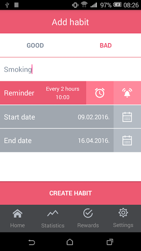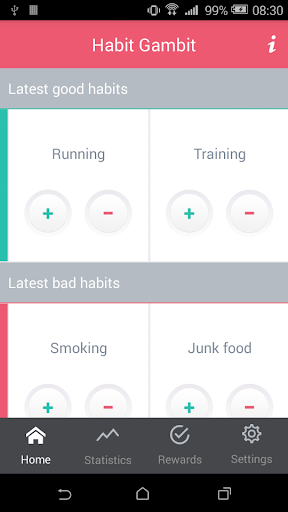 Habit Gambit will help you track your habits and routines. Quit smoking, eat less junk food or start working out! The app is easy to use, just create a habit and track your progress. At the end of the day, it's all up to you, give it a try.