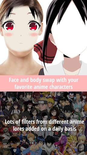 Portray as your favorite anime character in this anime face changer & anime face swap app. Over 10,000 anime face filters to face swap and face change with.