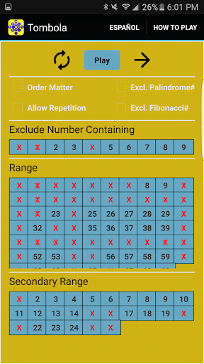 -Exclude Number Containing: This will remove all numbers in the Range containing the number crossed from this list. (0-9)