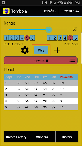 Number Picker for "Pick Number" in play and "Pick Plays"