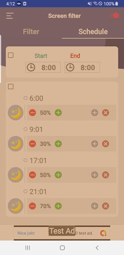 Schedule mode: Turn on/off the screen filter according to the scheduled time.