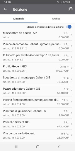 Con l’applicazione sistemi d’installazione Geberit progettate le pareti applicate del sistema Geberit GIS e Duofix in modo semplice, rapido ed efficiente. In pochi passi create una lista dei materiali e calcolate i costi dei materiali del vostro progetto.