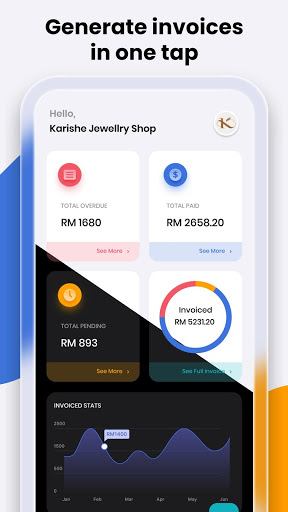 - Easily identify unpaid or overdue invoices with categorize of invoices with status and dates