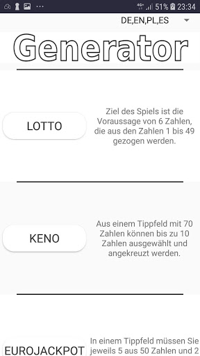 You can choose which lottery you want: Lotto, Keno or Eurojackpot. Good luck!