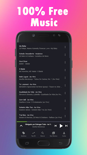 Listen to all genres of music (rock, indie, folk, pop, mpb, sertanejo, pagode, liner, funk, jazz, bossa nova, blues, classical music, gospel music, rap, electronic music). Different from other Apps (Deezer, Spotify). Super Music is totally free.
