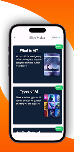 Students: Craft engaging class presentations effortlessly. For instance, for a history project, Ai Presentation Maker automatically generates slides with images, text, and timelines for a concise presentation.