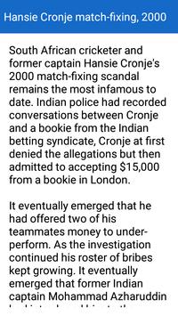 This app contains all history of cricket scandal almost happen . user will able to see in list and detials .