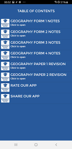This app is a revision tool for Geography students. It contains notes from form one to form four. It also contain topical revision with answers.