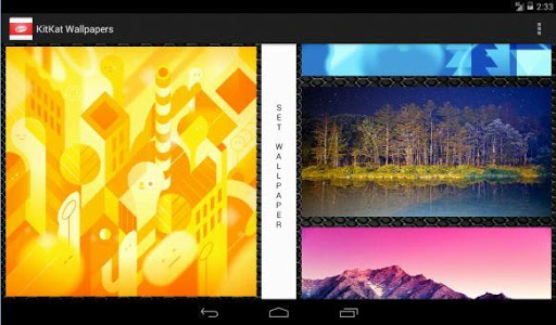 9 Beautiful HD KitKat wallpapers for any android device. A simple , elegant and very useful application to bring to your device the magic of the new Android Treat.