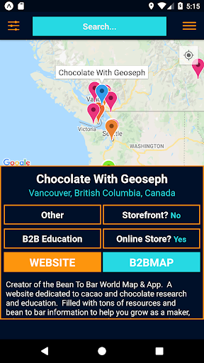 This app allows to find bean to bar business all over the world. This means you may find new makers in your own city that you never knew existed. It also means that if you are traveling somewhere for work or pleasure, you can check the app to see if there are any incredible bean to bar makers nearby you book into your itinerary! The map is constantly growing, so check back regularly and watchout for new makers and business. LOCATE - The map is simple and straightforward. Use your fingers to zoom in and out, and to click on a pin. You can also use the “search” feature if you know the name of the business you are looking for. Once you locate a maker, a description box will pop up which includes: