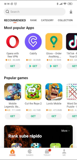 The new get apps app guide is a very visual app that guides the user's attention to help them to find the app he or she may be interested in. get apps mi guide main page shows you different tabs and menus to help you to quickly filter your search, looking for trending apps, games, collections, top downloads...