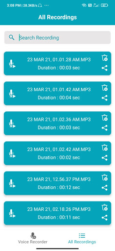 This voice recorder app is totally free. It is simple and easy to use. You can reliably record your meetings, personal notes, speeches, lectures, songs. This app can record most of your sound and voice. It has functionalities to delete and share your recordings as well.
