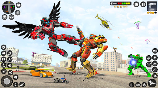Excited to play udane wala robot game features in war robot car transform games? Get ready to become robot transform superhero in flying robot transformation game to eliminate evil robot in crime city of war robot games. Enjoy riding futuristic bike in robot game to chase grand city gangster mafia of robot car games. Exclusive collection of robot hero and Indian bikes in this superhero flying games will be satisfying robot transform experience for the fans of flying robot games. Explore the crime city of bike and car transform game to do flying car robot shooting missions.