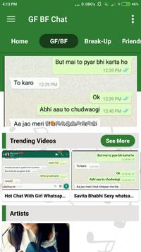 Sexy GF BF Chat: Best Of 100s - as you can guess is all about Girlfriend-Boyfriend Sexy chat. It is not merely an app but an experience in itself that brings you the best from the roots of GF-BF Chat. It is the best GF-BF Chat App of 2018. Sexy GF BF Chat App has more than 1000 Chats, And this keeps growing every day!