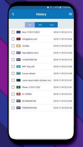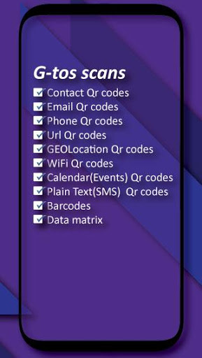 The G-tos app saves your scanned Qr code, barcode, and NFC data by default. You can disable this feature or delete saved data from settings.