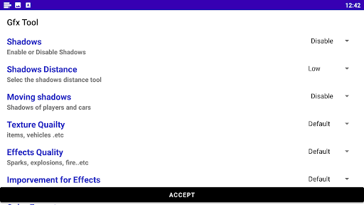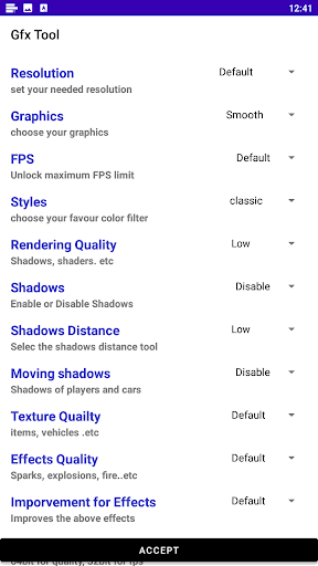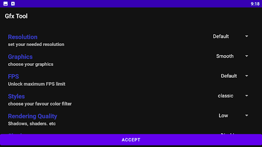 GFX Tool ultra is a free utility launcher for specific games where you can fully customize the game graphics to get beautiful pictures and smooth gameplay.
