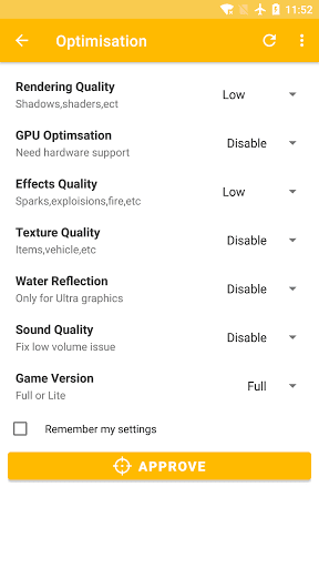 this tool provide different profiles for zero lag mode , Choose profile according to you device ram size,