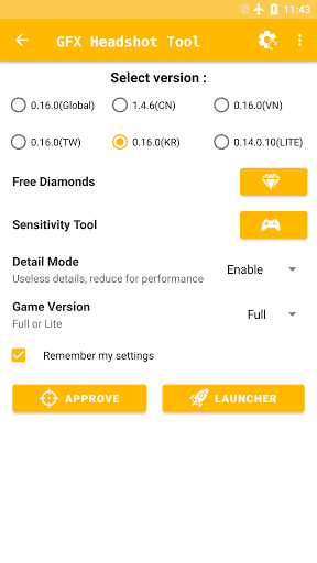 GFX HeadShot Tool Game Launcher and Free Diamonds is a free tool launcher for specific games where you can fully customize the game graphics to get optimised pictures and gaming experience ,this app support all version of game (Full and Lite).you can win free diamonds by playing the app ,This GFX tool application will helps you for customize your game settings and find out sensitivity for the game, This application is able to change the graphic settings and ultra graphics and more useful options for better performance.Dynamically improves the fps rendering with different graphics rendering levels,