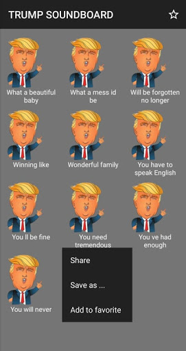 It contains over 200 sounds with the famous Donald Trump, some of them very funny.