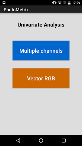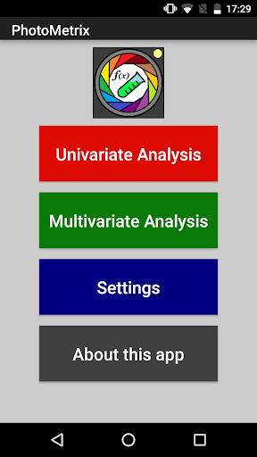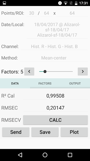 This app was created in 2014 and employs Single Linear Correlation technics for univariate analysis, Principal Component Analysis (PCA) and HCA for multivariate exploratory analysis and Partial Least Squares (PLS) for multivariate calibration. The image data are acquired using the device main camera and converted in RGB histograms. In addition, apart color channels of RGB, HSV, HSL and HSI systems are used during the univariate and multivariate processing. It is possible to send by e-mail the image data, analysis data and charts. In order to validate the obtained results, the same sets of data were tested using Microsoft Excel© and ChemoStat©. The results in both applications coincided in various combinations.