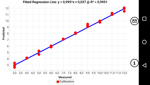 Also calculates: slope (span), intercept (off-set) and regression (Pearson product-moment correlation coefficient) in Univariate Calibration Analysis.