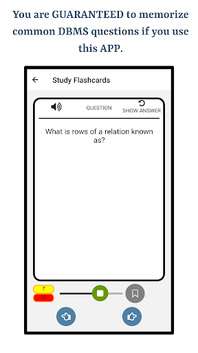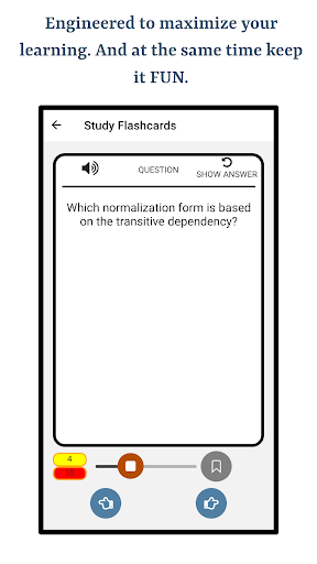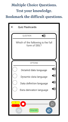 . The app is engineered to make users perfect understanding common Database Management Systems questions by studying for a very short amount of time. Audio functionality and bookmarking is available throughout the app on chapter, section, study mode and quiz modes.