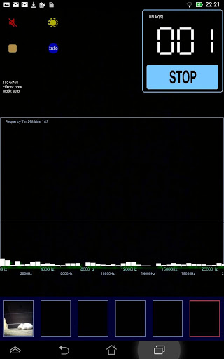 The app is a full functional camera app with audio spectrum analyzer, if your camera support flash light you can use it in the night. On noise, it will turn on flash light and take the pic.
