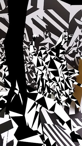 Artists Gibson/Martelli re-imagine 'dazzle' camouflage as tribal markings for invisible performers, moving within an installation, activated by a special App.